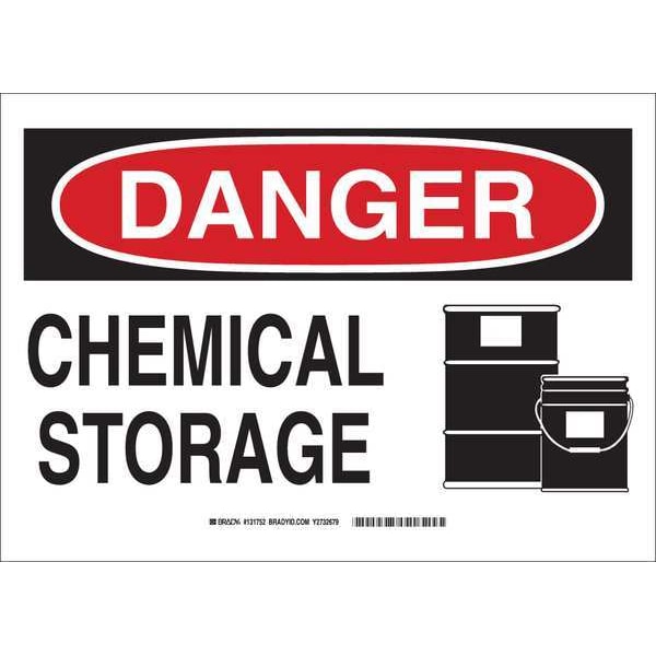Danger Sign, Sign Subject Matter Chemical, Gas or Hazardous Materials, Height 10 in, Width 14 in, Sign Material Polyester, Sign Mounting Style Adhesive Surface, Header Danger, Legend Chemical Storage, Printed Language English, Sign Shape Rectangle
