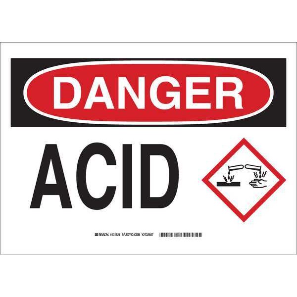 Danger Sign, Sign Subject Matter Chemical, Gas or Hazardous Materials, Height 10 in, Width 14 in, Sign Material Polyester, Sign Mounting Style Adhesive Surface, Header Danger, Legend Acid, Printed Language English, Sign Shape Rectangle