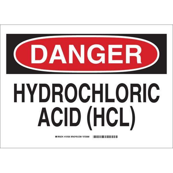 Danger Sign, Sign Subject Matter Chemical, Gas or Hazardous Materials, Height 10 in, Width 14 in, Sign Material Polyester, Sign Mounting Style Adhesive Surface, Header Danger, Legend Hydrochloric Acid (Hcl), Printed Language English, Sign Shape Rectangle
