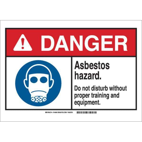Danger Sign, Sign Subject Matter Health Hazard, Height 10 in, Width 14 in, Sign Material Polyester, Header Danger, Legend Asbestos. Hazardous. Do Not Disturb Without Proper Training And Equipment., Printed Language English, Sign Shape Rectangle