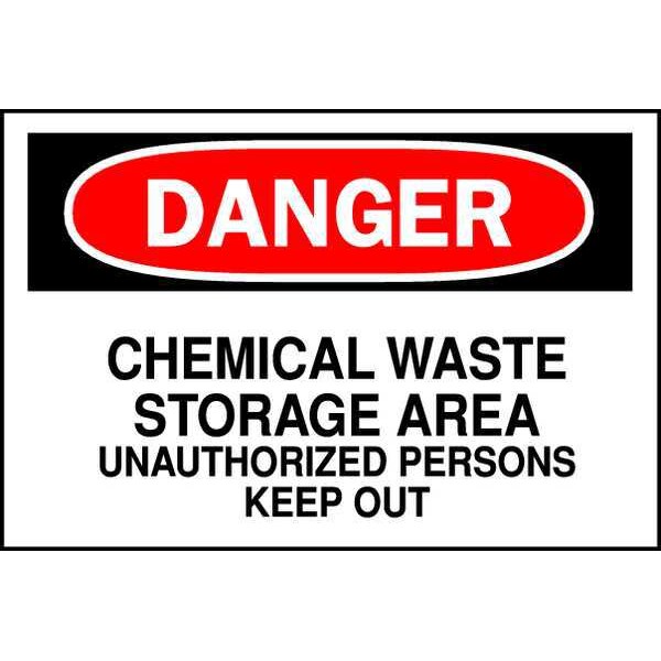 Danger Sign, Sign Subject Matter Authorized Personnel and Restricted Access, Height 10 in, Width 14 in, Sign Material Polyester, Sign Mounting Style Adhesive Surface, Header Danger, Legend Chemical Waste Storage Area Unauthorized Persons Keep Out, Printed Language English, Sign Shape Rectangle