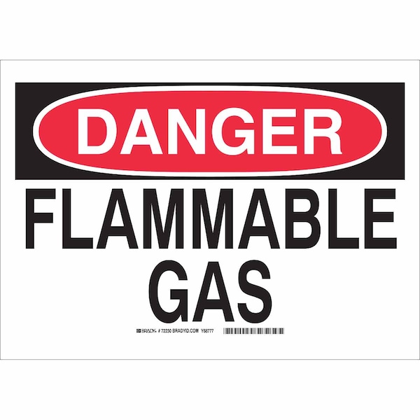 Danger Sign, Sign Subject Matter Chemical, Gas or Hazardous Materials, Height 10 in, Width 14 in, Sign Material Polyester, Sign Mounting Style Adhesive Surface, Header Danger, Legend Flammable Gas, Printed Language English, Sign Shape Rectangle