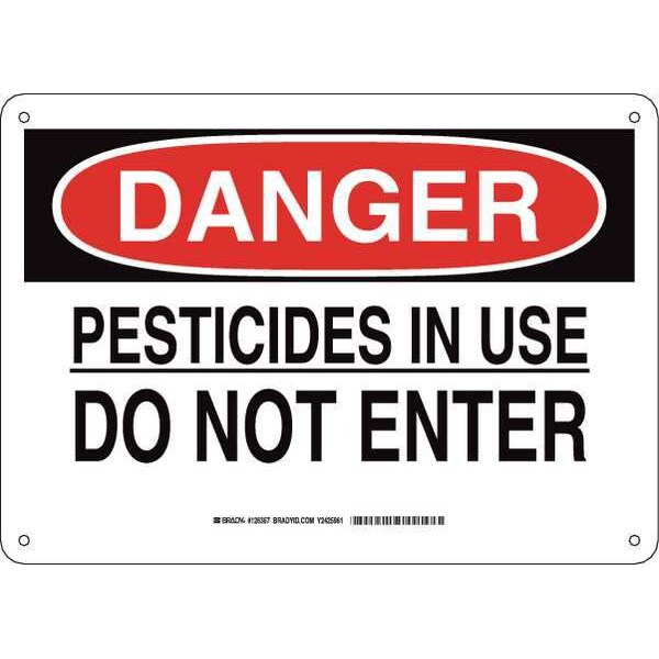 Danger Sign, Sign Subject Matter Pesticide, Height 10 in, Width 14 in, Sign Material Aluminum, Sign Mounting Style With Mounting Holes, Header Danger, Legend Pesticides In Use Do Not Enter, Printed Language English, Sign Shape Rectangle