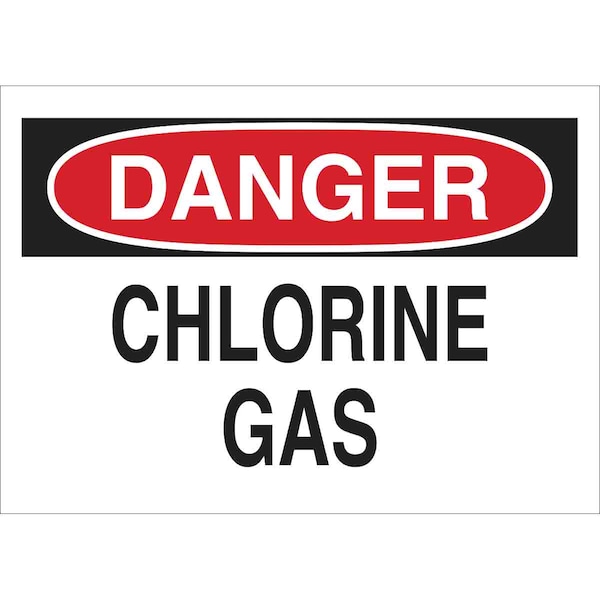 Danger Sign, Sign Subject Matter Chemical, Gas or Hazardous Materials, Height 10 in, Width 14 in, Sign Material Aluminum, Sign Mounting Style With Mounting Holes, Header Danger, Legend Chlorine Gas, Printed Language English, Sign Shape Rectangle
