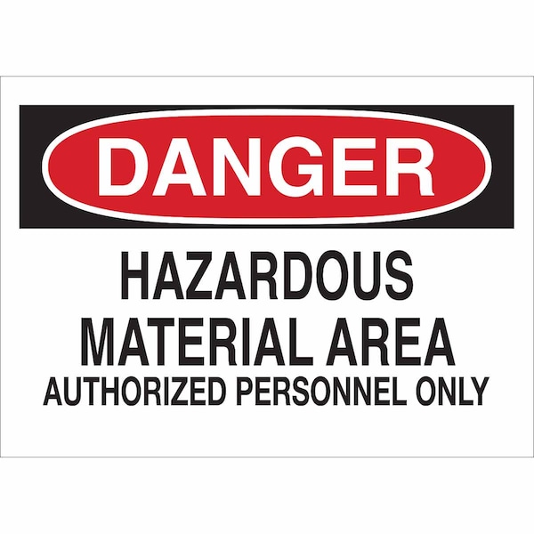 Danger Sign, Sign Subject Matter Authorized Personnel and Restricted Access, Height 10 in, Width 14 in, Sign Material Aluminum, Sign Mounting Style With Mounting Holes, Header Danger, Legend Hazardous Material Area Authorized Personnel Only, Printed Language English, Sign Shape Rectangle