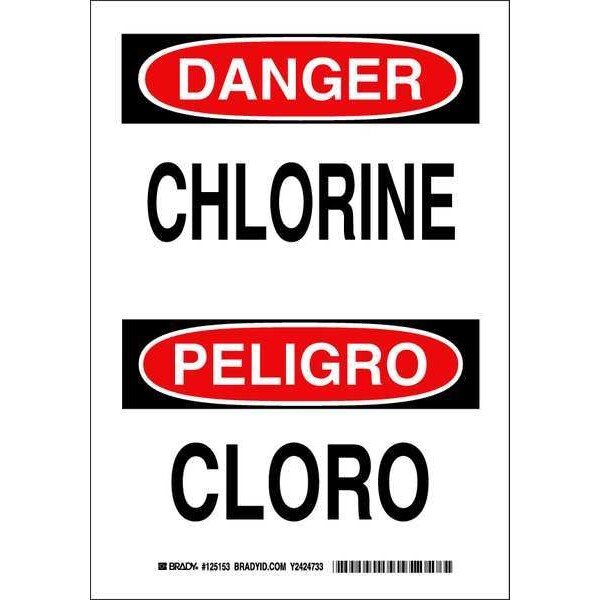 Danger Sign, Sign Subject Matter Chemical, Gas or Hazardous Materials, Height 10 in, Width 7 in, Sign Material Polyester, Sign Mounting Style Adhesive Surface, Header Danger/Peligro, Legend Chlorine/Cloro, Printed Language English, Spanish, Sign Shape Rectangle