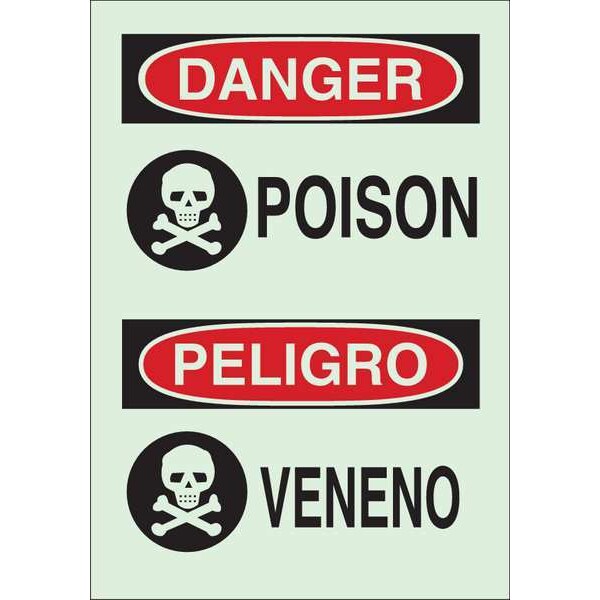 Danger Sign, Sign Subject Matter Chemical, Gas or Hazardous Materials, Height 10 in, Width 7 in, Sign Material Polyester, Sign Mounting Style Adhesive Surface, Header Danger/Peligro, Legend Poison/Veneno, Printed Language English, Spanish, Sign Shape Rectangle