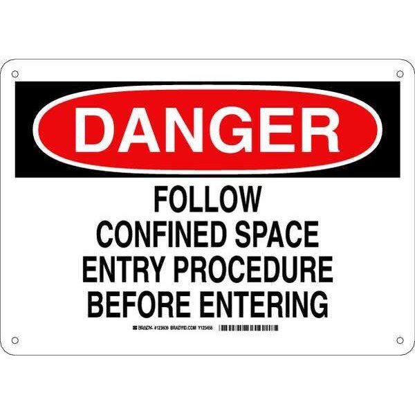 Danger Sign, Sign Subject Matter Confined Space, Height 10 in, Width 14 in, Sign Material Plastic, Sign Mounting Style With Mounting Holes, Header Danger, Legend Follow Confined Space Entry Procedure Before Entering, Printed Language English, Sign Shape Rectangle