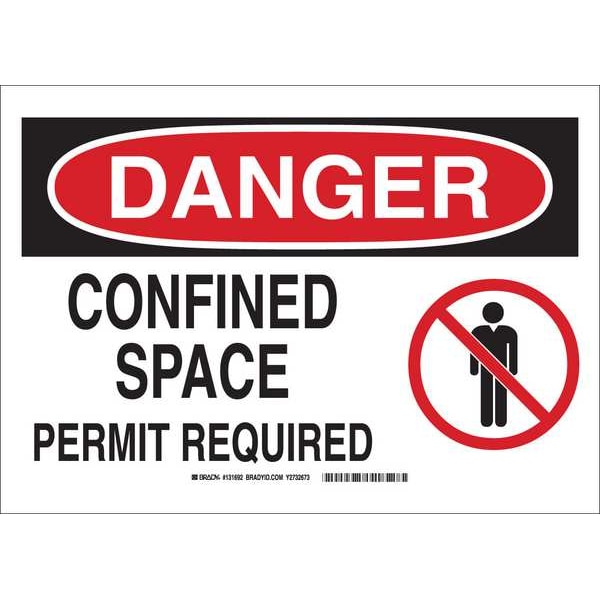 Danger Sign, Rectangle, English, Sign Legend Confined Space Permit Required
