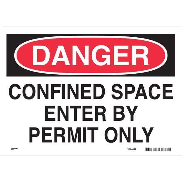 Danger Sign, Sign Subject Matter Confined Space, Height 10 in, Width 14 in, Sign Material Vinyl, Sign Mounting Style Adhesive Surface, Header Danger, Legend Confined Space Enter By Permit Only, Printed Language English, Sign Shape Rectangle