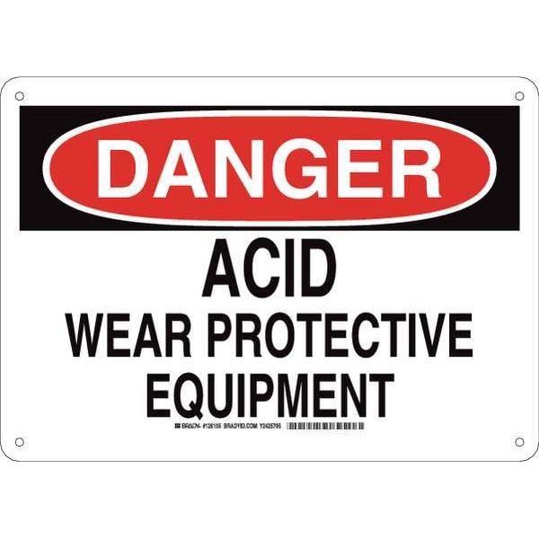 Danger Sign, Sign Subject Matter Personal Protection, Height 10 in, Width 14 in, Sign Material Aluminum, Sign Mounting Style With Mounting Holes, Header Danger, Legend Acid Wear Protective Equipment, Printed Language English, Sign Shape Rectangle