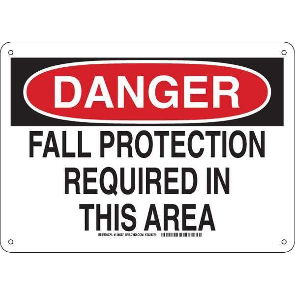 Danger Sign, Sign Subject Matter Fall Protection, Height 10 in, Width 14 in, Sign Material Aluminum, Sign Mounting Style With Mounting Holes, Header Danger, Legend Fall Protection Required In This Area, Printed Language English, Sign Shape Rectangle
