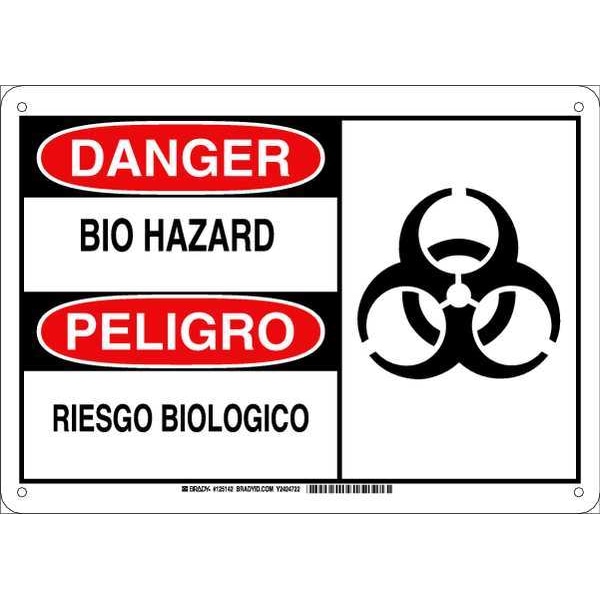 Danger Sign, Sign Subject Matter Biohazard, Height 10 in, Width 14 in, Sign Material Aluminum, Sign Mounting Style With Mounting Holes, Header Danger/Peligro, Legend Bio Hazard/Riesgo Biologico, Printed Language English, Spanish, Sign Shape Rectangle