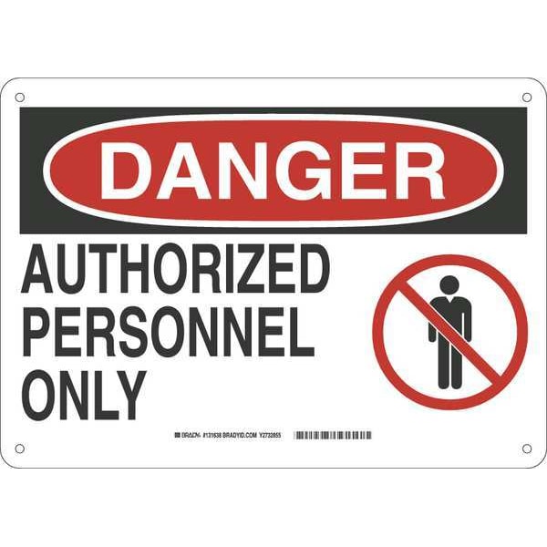 Danger Sign, Sign Subject Matter Authorized Personnel and Restricted Access, Height 10 in, Width 14 in, Sign Material Fiberglass, Sign Mounting Style With Mounting Holes, Header Danger, Legend Authorized Personnel Only, Printed Language English, Sign Shape Rectangle