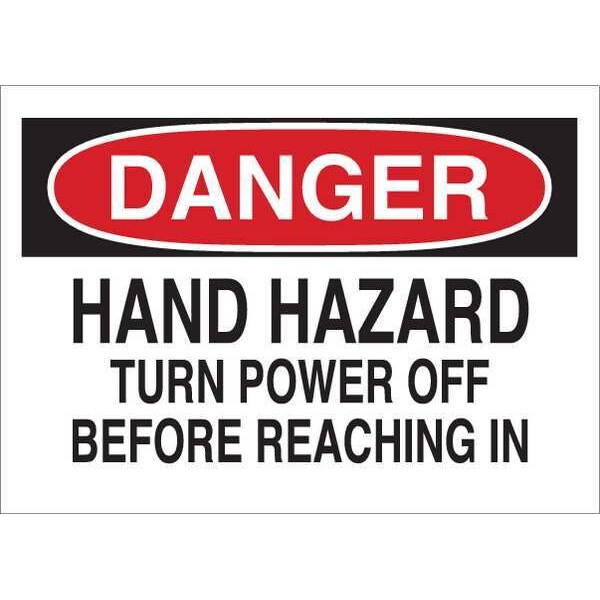 Danger Sign, Sign Subject Matter Electrical Hazard, Height 10 in, Width 14 in, Sign Material Fiberglass, Sign Mounting Style With Mounting Holes, Header Danger, Legend Hand Hazard Turn Power Off Before Reaching In, Printed Language English, Sign Shape Rectangle