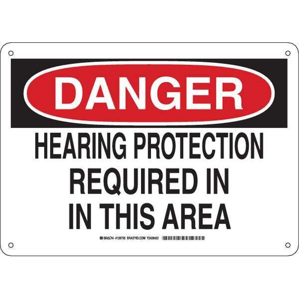 Danger Sign, Sign Subject Matter Personal Protection, Height 10 in, Width 14 in, Sign Material Plastic, Sign Mounting Style With Mounting Holes, Header Danger, Legend Hearing Protection Required In This Area, Printed Language English, Sign Shape Rectangle