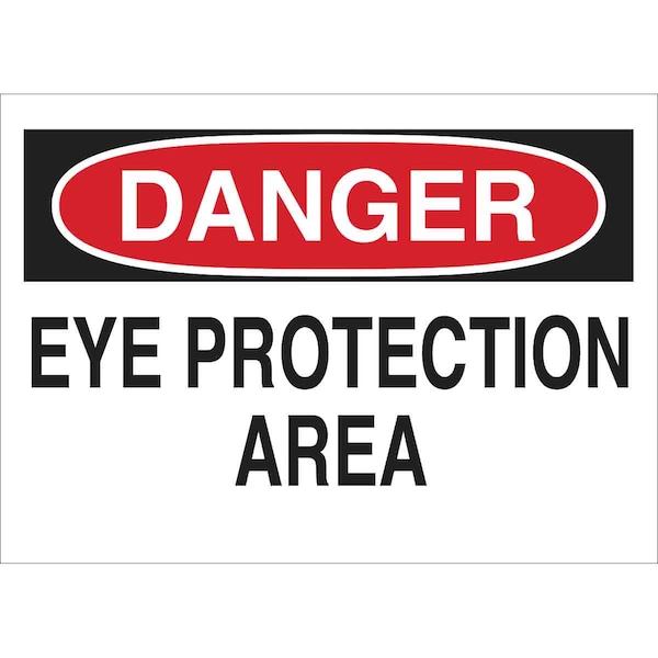 Danger Sign, Sign Subject Matter Personal Protection, Height 10 in, Width 14 in, Sign Material Plastic, Sign Mounting Style With Mounting Holes, Header Danger, Legend Eye Protection Area, Printed Language English, Sign Shape Rectangle