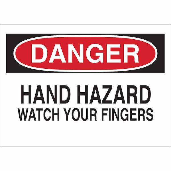 Danger Sign, Sign Subject Matter Keep Hands Clear, Height 10 in, Width 14 in, Sign Material Plastic, Sign Mounting Style With Mounting Holes, Header Danger, Legend Hand Hazard Watch Your Fingers, Printed Language English, Sign Shape Rectangle