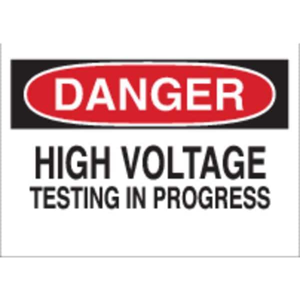 Danger Sign, Sign Subject Matter Electrical Hazard, Height 10 in, Width 14 in, Sign Material Plastic, Sign Mounting Style With Mounting Holes, Header Danger, Legend High Voltage Testing In Progress, Printed Language English, Sign Shape Rectangle