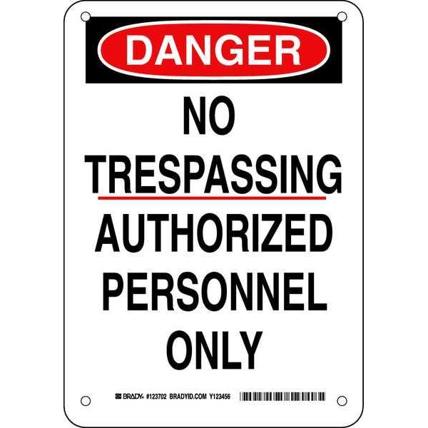 Danger Sign, Sign Subject Matter Authorized Personnel and Restricted Access, Height 10 in, Width 7 in, Sign Material Plastic, Sign Mounting Style With Mounting Holes, Header Danger, Legend No Trespassing Authorized Personnel Only, Printed Language English, Sign Shape Rectangle