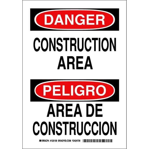Danger Sign, Sign Subject Matter Construction, Height 10 in, Width 7 in, Sign Material Polyester, Sign Mounting Style Adhesive Surface, Header Danger/Peligro, Legend Construction Area/Area De Construccion, Printed Language English, Spanish, Sign Shape Rectangle