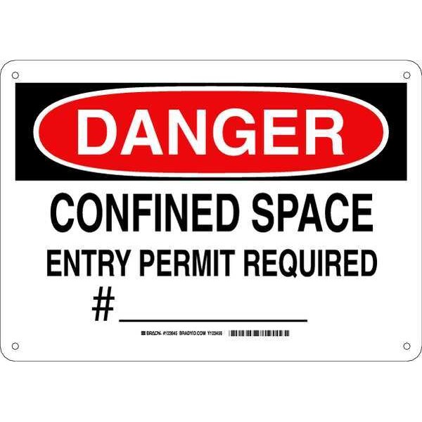 Danger Sign, Sign Subject Matter Confined Space, Height 10 in, Width 14 in, Sign Material Plastic, Sign Mounting Style With Mounting Holes, Header Danger, Legend Confined Space Entry Permit Required #___, Printed Language English, Sign Shape Rectangle