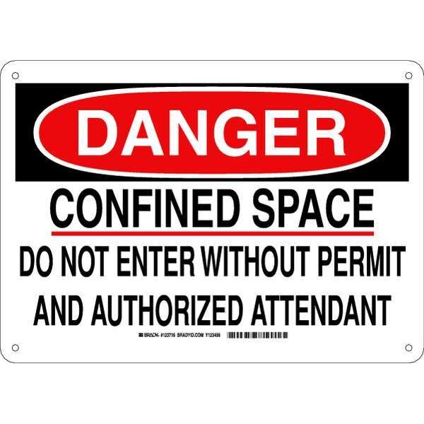 Danger Sign, Sign Subject Matter Confined Space, Height 10 in, Width 14 in, Sign Material Aluminum, Sign Mounting Style With Mounting Holes, Header Danger, Legend Confined Space Do Not Enter Without Permit And Authorized Attendant, Printed Language English, Sign Shape Rectangle
