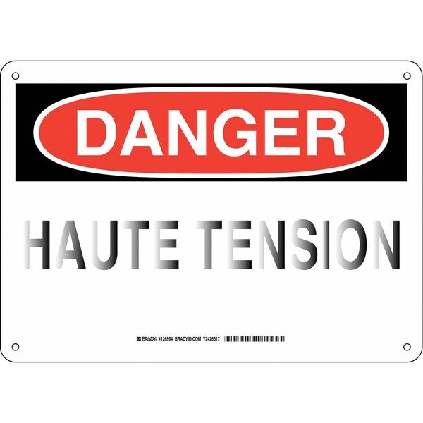 Danger Sign, Sign Subject Matter Facility, Height 10 In., Width 14 In., Sign Material Plastic, Sign Mounting Style With Mounting Holes, Header Danger, Legend Haute Tension, Printed Language English, Sign Shape Rectangle