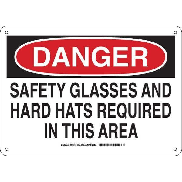 Danger Sign, Sign Subject Matter Personal Protection, Height 10 in, Width 14 in, Sign Material Aluminum, Sign Mounting Style With Mounting Holes, Header Danger, Legend Safety Glasses And Hard Hats Required In This Area, Printed Language English, Sign Shape Rectangle