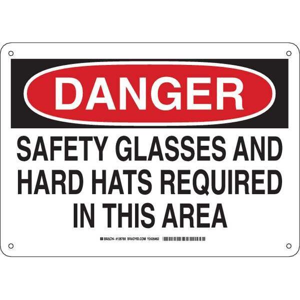 Danger Sign, Sign Subject Matter Personal Protection, Height 10 in, Width 14 in, Sign Material Plastic, Sign Mounting Style With Mounting Holes, Header Danger, Legend Safety Glasses And Hard Hats Required In This Area, Printed Language English, Sign Shape Rectangle