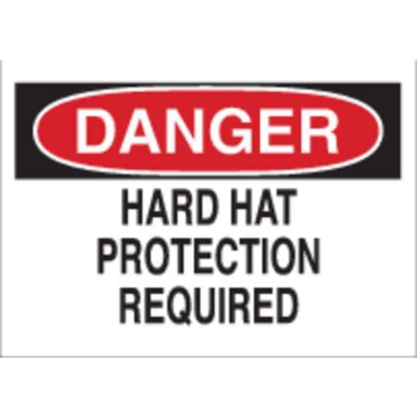 Danger Sign, Sign Subject Matter Personal Protection, Height 10 in, Width 14 in, Sign Material Plastic, Sign Mounting Style With Mounting Holes, Header Danger, Legend Hard Hat Protection Required, Printed Language English, Sign Shape Rectangle