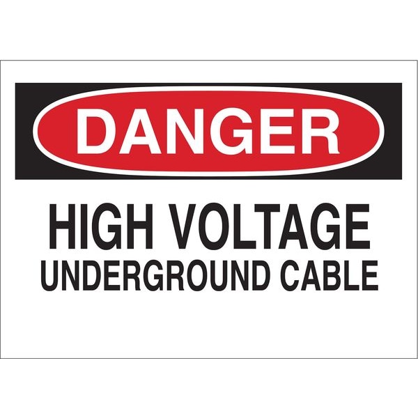 Danger Sign, Sign Subject Matter Electrical Hazard, Height 10 in, Width 14 in, Sign Material Plastic, Sign Mounting Style With Mounting Holes, Header Danger, Legend High Voltage Underground Cable, Printed Language English, Sign Shape Rectangle