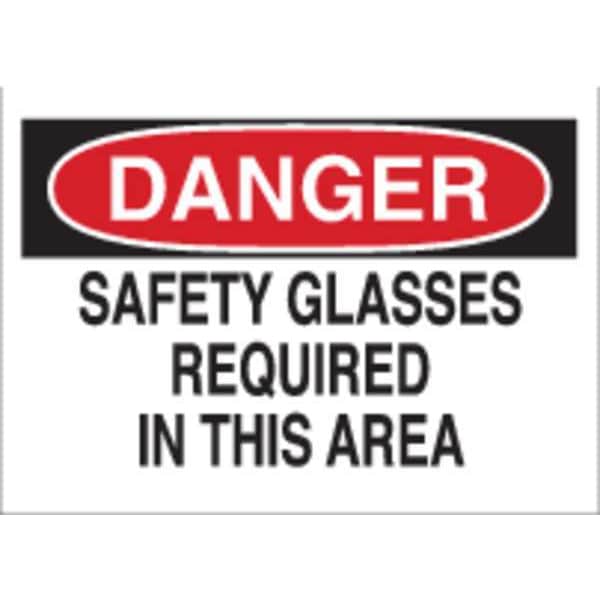 Danger Sign, Sign Subject Matter Personal Protection, Height 10 in, Width 14 in, Sign Material Polyester, Sign Mounting Style Adhesive Surface, Header Danger, Legend Safety Glasses Required In This Area, Printed Language English, Sign Shape Rectangle
