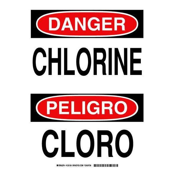 Danger Sign, Sign Subject Matter Chemical, Gas or Hazardous Materials, Height 14 in, Width 10 in, Sign Material Polyester, Sign Mounting Style Adhesive Surface, Header Danger/Peligro, Legend Chlorine/Cloro, Printed Language English, Spanish, Sign Shape Rectangle