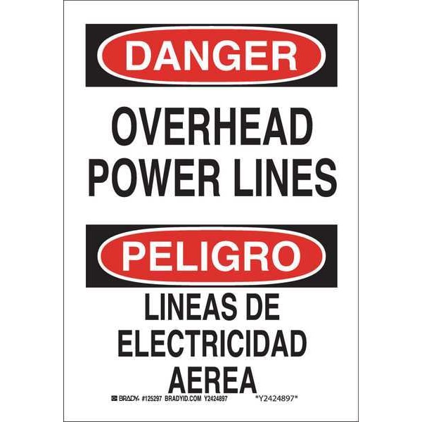 Danger Sign, Sign Subject Matter Electrical Hazard, Height 14 in, Width 10 in, Sign Material Polyester, Sign Mounting Style Adhesive Surface, Header Danger/Peligro, Legend Overhead Power Lines/Lineas De Electricidad Aerea, Printed Language English, Spanish, Sign Shape Rectangle