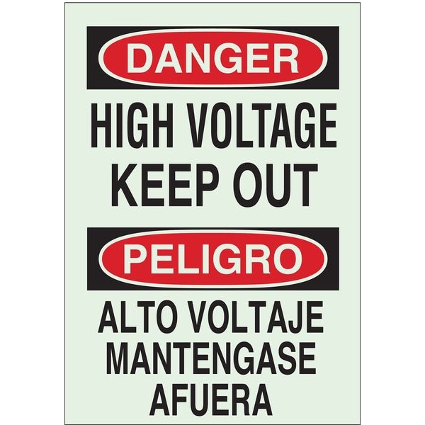 Danger Sign, Sign Subject Matter Electrical Hazard, Height 14 in, Width 10 in, Sign Material Polyester, Sign Mounting Style Adhesive Surface, Header Danger/Peligro, Legend High Voltage Keep Out/Alto Voltaje No Acercarse, Printed Language English, Spanish, Sign Shape Rectangle
