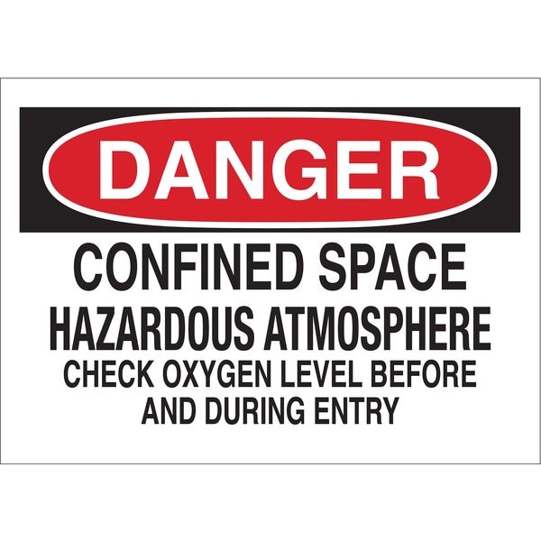 Danger Sign, Sign Subject Matter Confined Space, Height 3 1/2 in, Width 5 in, Sign Material Polyester, Sign Mounting Style Adhesive Surface, Header Danger, Legend Confined Space Hazardous Atmosphere Check Oxygen Level Before And During Entry, Printed Language English, Sign Shape Rectangle