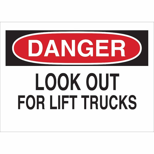 Danger Sign, Sign Subject Matter Lift Truck Traffic, Height 7 In., Width 10 In., Sign Material Aluminum, Sign Mounting Style With Mounting Holes, Header Danger, Legend Look Out For Lift Trucks, Printed Language English, Sign Shape Rectangle