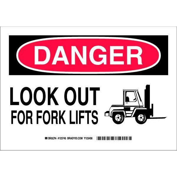 Danger Sign, Sign Subject Matter Lift Truck Traffic, Height 7 In., Width 10 In., Sign Material Polyester, Sign Mounting Style Adhesive Surface, Header Danger, Legend Look Out For Fork Lifts, Printed Language English, Sign Shape Rectangle