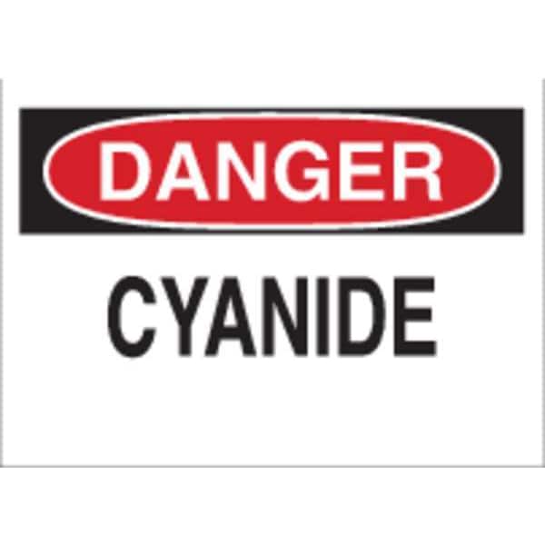 Danger Sign, Sign Subject Matter Chemical, Gas or Hazardous Materials, Height 7 in, Width 10 in, Sign Material Plastic, Sign Mounting Style With Mounting Holes, Header Danger, Legend Cyanide, Printed Language English, Sign Shape Rectangle