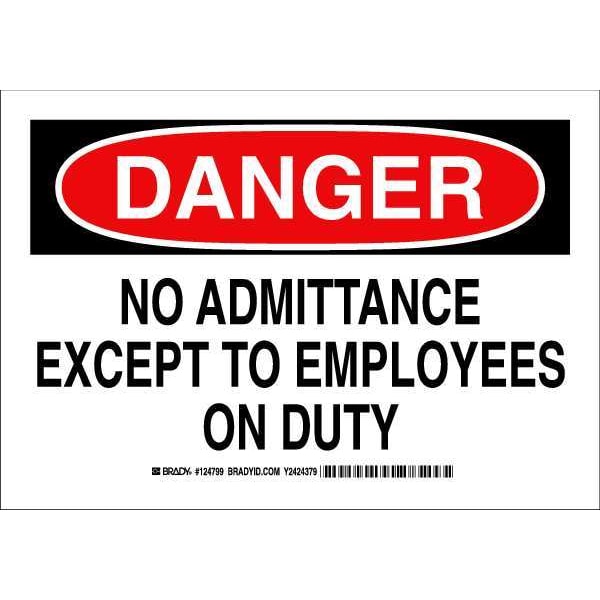 Danger Sign, Sign Subject Matter Authorized Personnel and Restricted Access, Height 7 in, Width 10 in, Sign Material Polyester, Sign Mounting Style Adhesive Surface, Header Danger, Legend No Admittance Except To Employees On Duty, Printed Language English, Sign Shape Rectangle