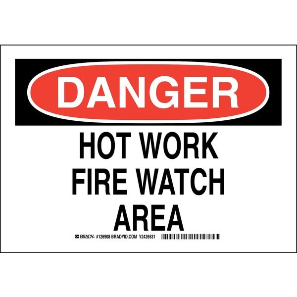 Danger Sign, Sign Subject Matter Hot, Height 7 in, Width 10 in, Sign Material Polyester, Sign Mounting Style Adhesive Surface, Header Danger, Legend Hot Work Fire Watch Area, Printed Language English, Sign Shape Rectangle