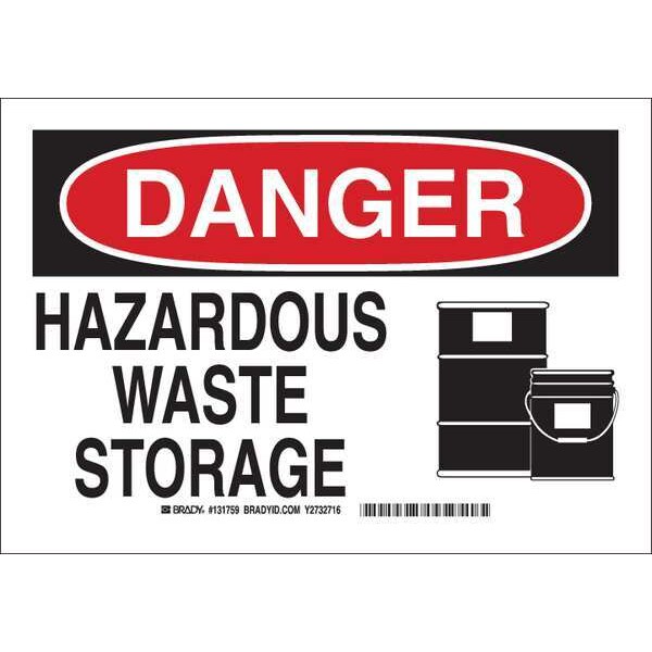 Danger Sign, Sign Subject Matter Chemical, Gas or Hazardous Materials, Height 7 in, Width 10 in, Sign Material Polyester, Sign Mounting Style Adhesive Surface, Header Danger, Legend Hazardous Waste Storage, Printed Language English, Sign Shape Rectangle