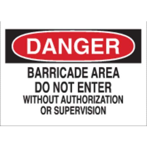 Danger Sign, Sign Subject Matter Authorized Personnel and Restricted Access, Height 7 in, Width 10 in, Sign Material Polyester, Sign Mounting Style Adhesive Surface, Header Danger, Legend Barricade Area Do Not Enter Without Authorization Or Supervision, Printed Language English, Sign Shape Rectangle