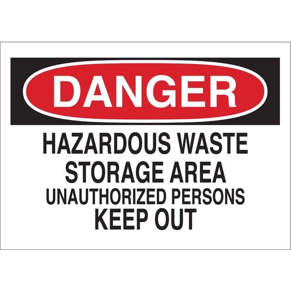 Danger Sign, Sign Subject Matter Chemical, Gas or Hazardous Materials, Height 7 in, Width 10 in, Sign Material Polyester, Sign Mounting Style Adhesive Surface, Header Danger, Legend Hazardous Waste Storage Area Unauthorized Persons Keep Out, Printed Language English, Sign Shape Rectangle