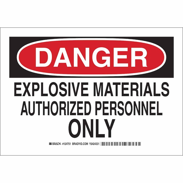 Danger Sign, Sign Subject Matter Authorized Personnel and Restricted Access, Height 7 in, Width 10 in, Sign Material Aluminum, Sign Mounting Style With Mounting Holes, Header Danger, Legend Explosive Materials Authorized Personnel Only, Printed Language English, Sign Shape Rectangle