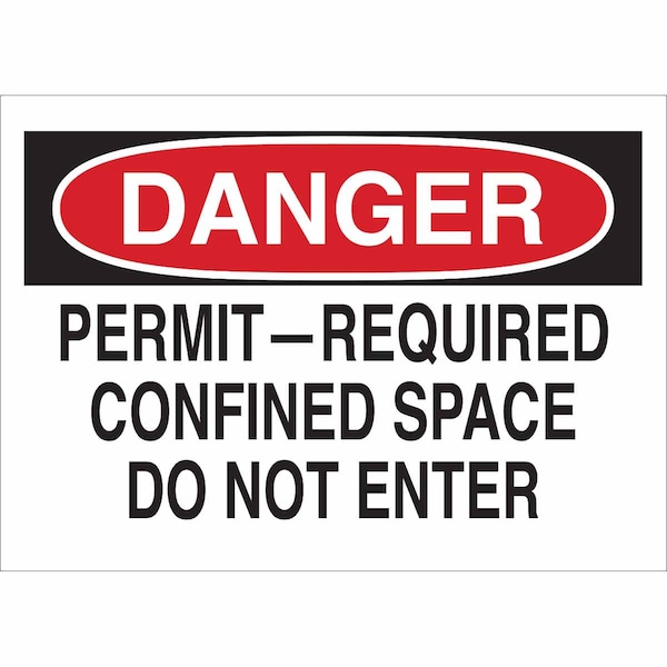 Danger Sign, Sign Subject Matter Confined Space, Height 7 in, Width 10 in, Sign Material Polyester, Sign Mounting Style Adhesive Surface, Header Danger, Legend Permit-Required Confined Space Do Not Enter, Printed Language English, Sign Shape Rectangle