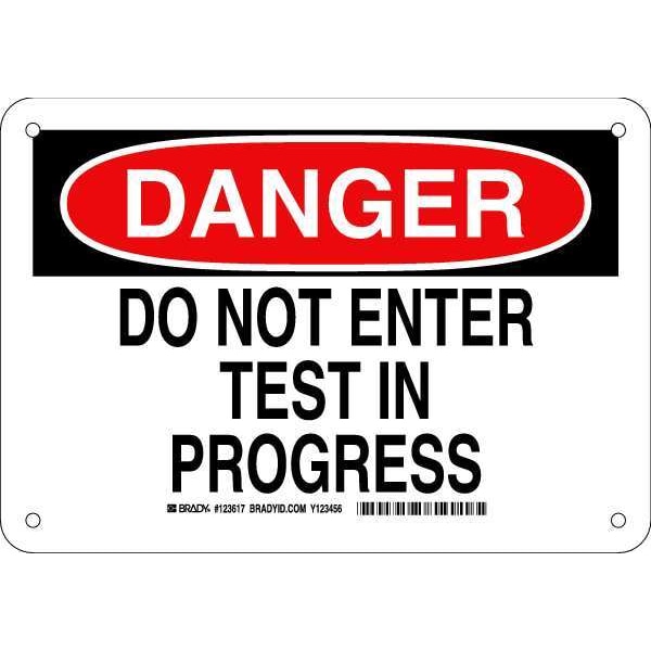 Danger Sign, Sign Subject Matter Authorized Personnel and Restricted Access, Height 7 in, Width 10 in, Sign Material Aluminum, Sign Mounting Style With Mounting Holes, Header Danger, Legend Do Not Enter Test In Progress, Printed Language English, Sign Shape Rectangle