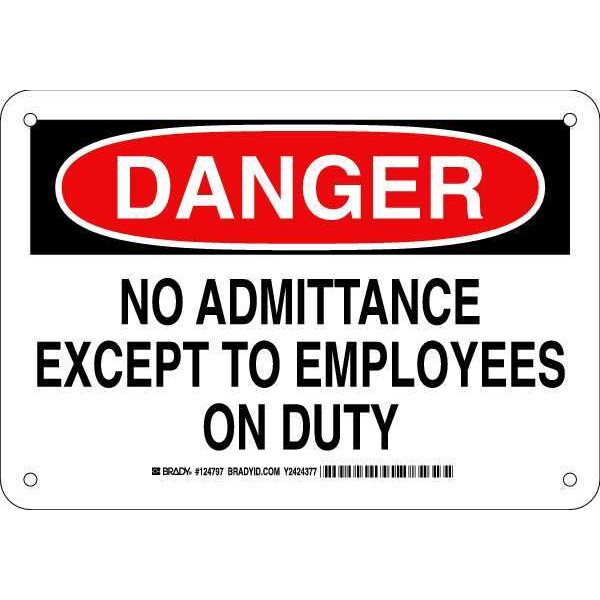 Danger Sign, Sign Subject Matter Authorized Personnel and Restricted Access, Height 7 in, Width 10 in, Sign Material Aluminum, Sign Mounting Style With Mounting Holes, Header Danger, Legend No Admittance Except To Employees On Duty, Printed Language English, Sign Shape Rectangle