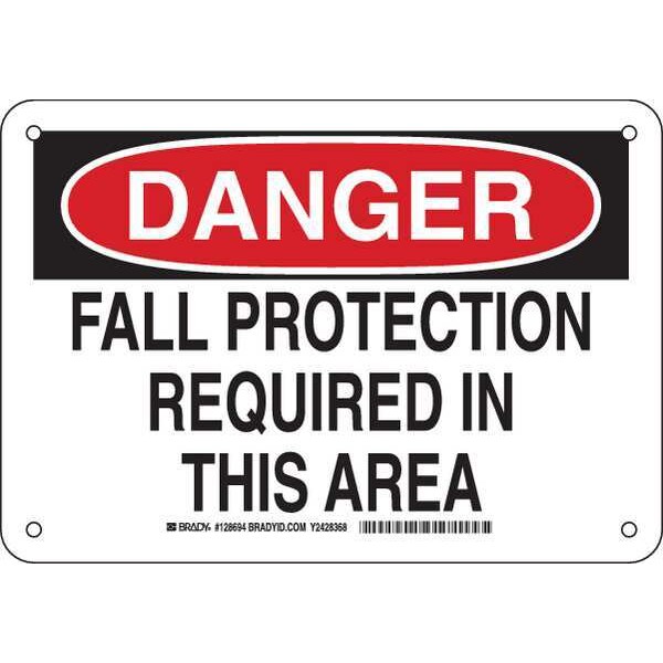 Danger Sign, Sign Subject Matter Fall Protection, Height 7 in, Width 10 in, Sign Material Aluminum, Sign Mounting Style With Mounting Holes, Header Danger, Legend Fall Protection Required In This Area, Printed Language English, Sign Shape Rectangle